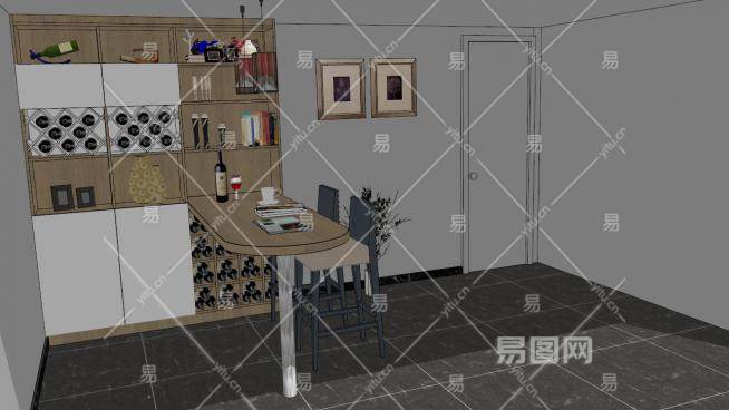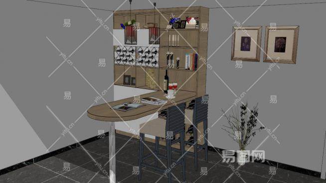 实木吧台柜子SU模型下载_sketchup草图大师SKP模型
