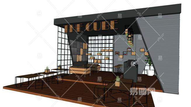 多维数据集咖啡厅吧台SU模型下载_sketchup草图大师SKP模型