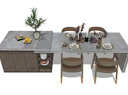 现代吧台餐桌椅组合餐具碗筷