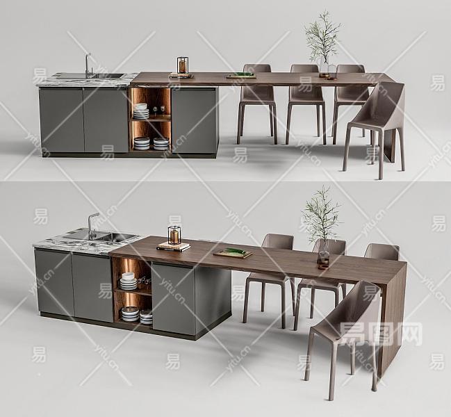 现代中岛吧台 餐桌椅 中岛 吧台 吧椅 室内 中岛台