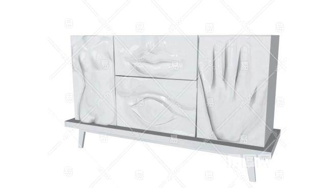 餐边柜人 体艺术白色SU模型下载_sketchup草图大师SKP模型