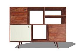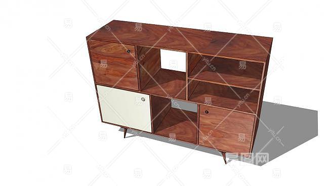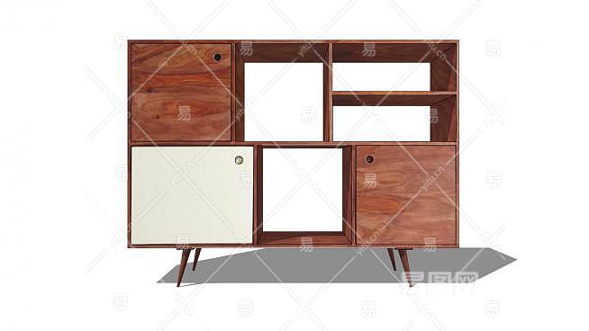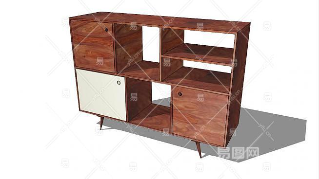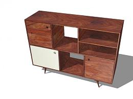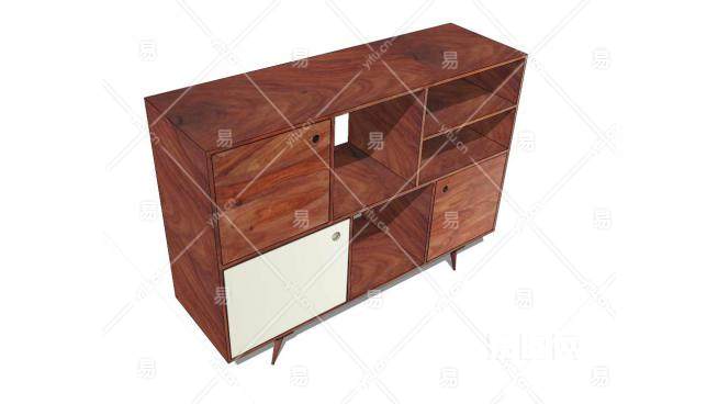 带滑动门的复古边柜SU模型下载_sketchup草图大师SKP模型