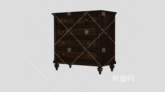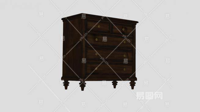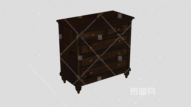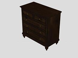 棕色小型抽屉柜SU模型下载_sketchup草图大师SKP模型