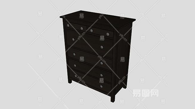 黑褐色6个抽屉斗柜SU模型下载_sketchup草图大师SKP模型