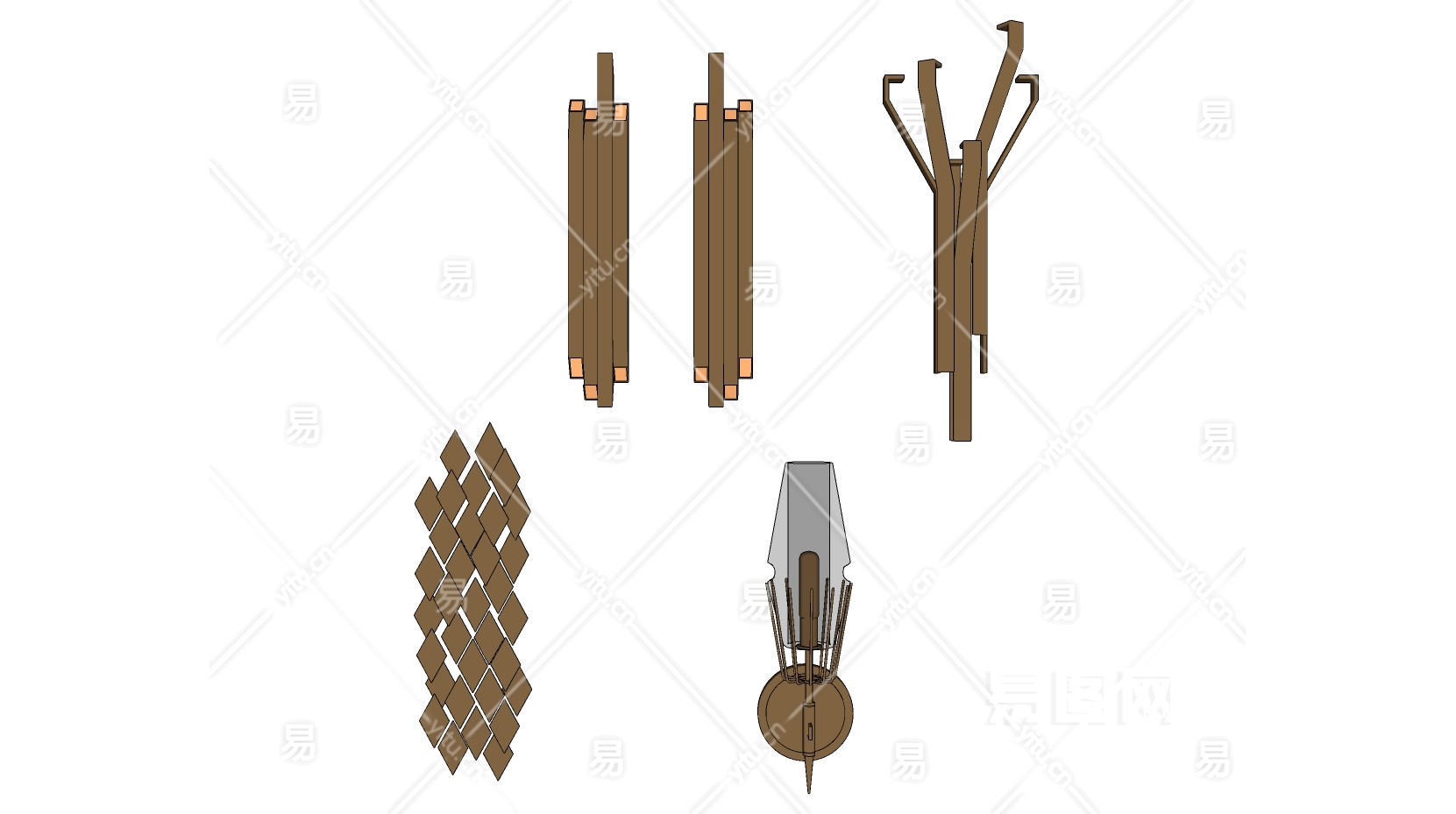 轻奢金属壁灯组合 玻璃 灯具su草图模型下载