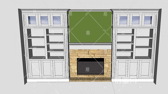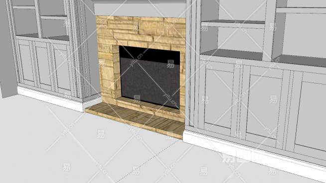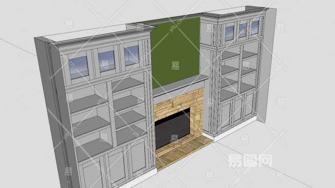 书架的壁炉SU模型下载_sketchup草图大师SKP模型