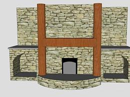 砌石壁炉SU模型下载_sketchup草图大师SKP模型