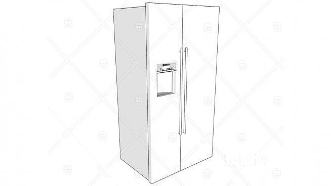 并排白色双开门电冰箱SU模型下载_sketchup草图大师SKP模型