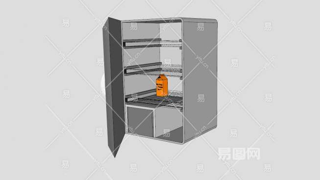 不锈钢单门式电冰箱SU模型下载_sketchup草图大师SKP模型