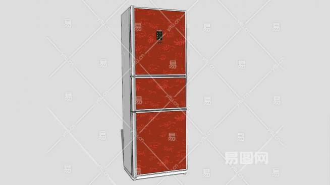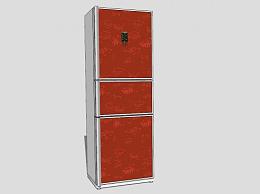 朱红家用三开门冰箱SU模型下载_sketchup草图大师SKP模型