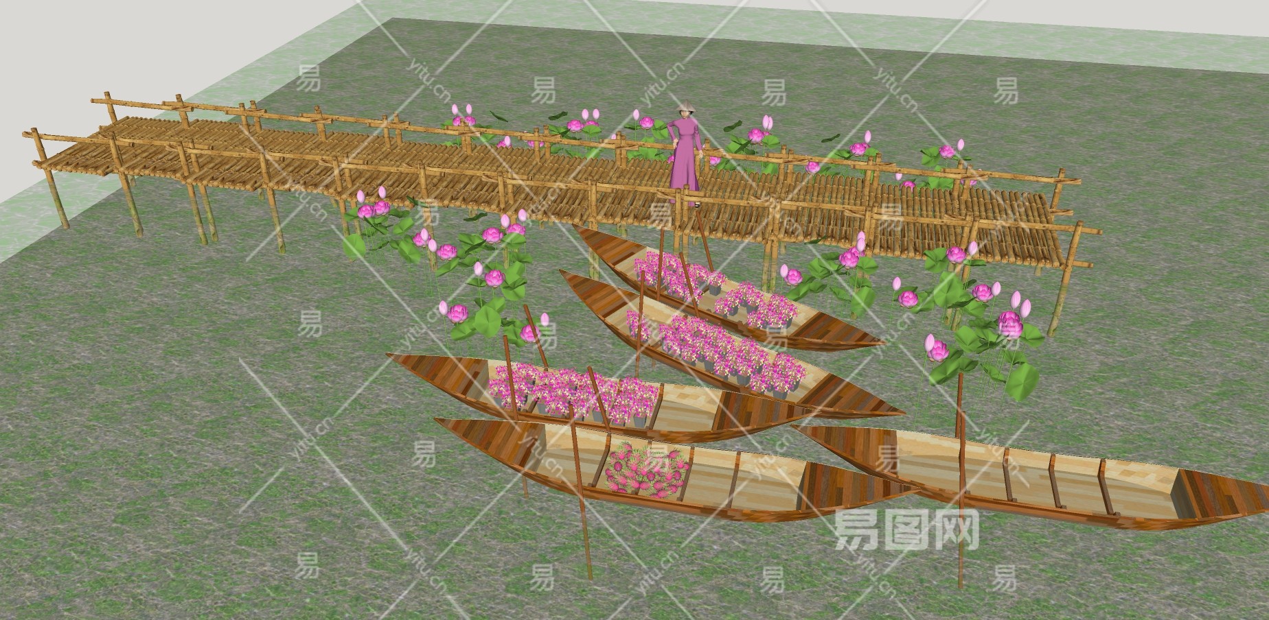 19荷花塘码头场景 中式简约风格荷花池塘水景 渔人码头景观湖 生态旅游休闲湿地度假风景滨水船屋 民宿酒店su草图模型下载