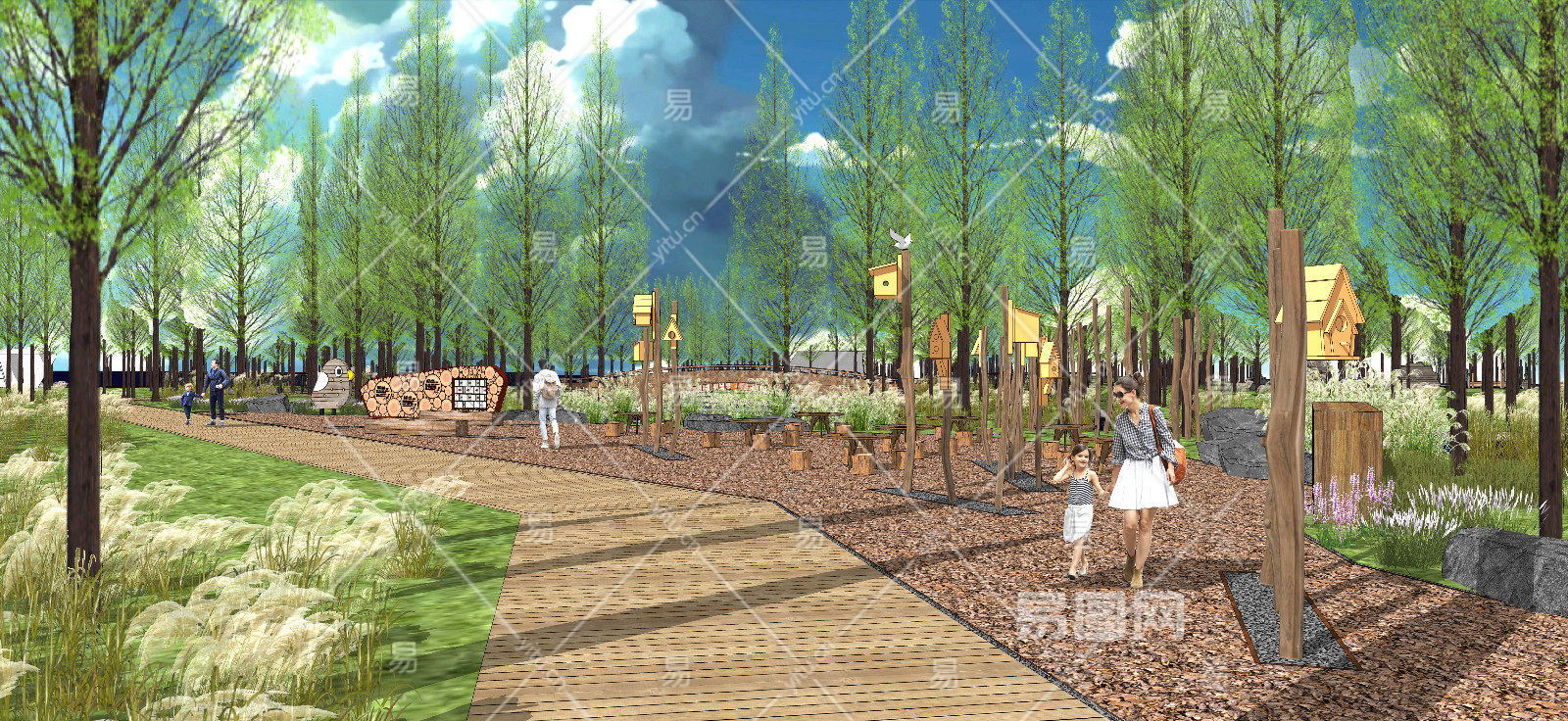 现代滨河湿地公园景观 生态岛屿 景观栈道 观景亲水平台 野趣儿童区 景观桥