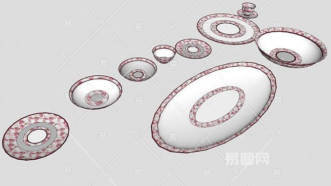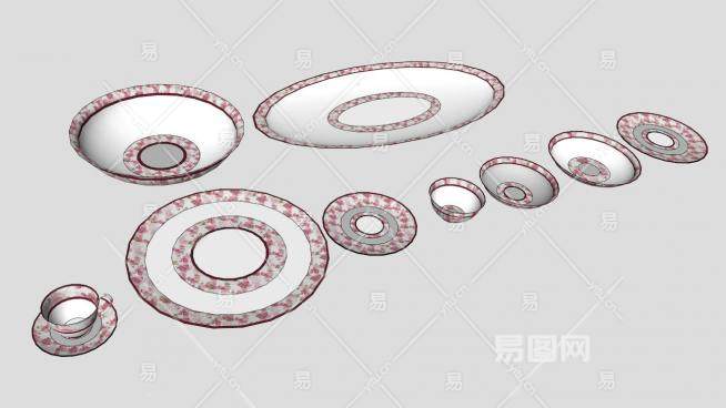 春天餐具SU模型下载_sketchup草图大师SKP模型