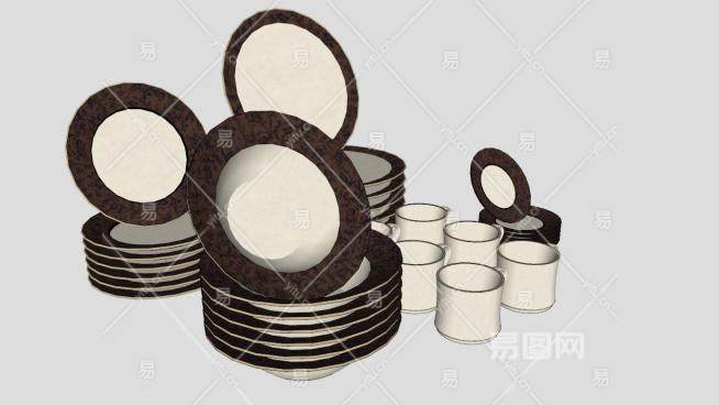 餐具餐盘杯子SU模型下载_sketchup草图大师SKP模型