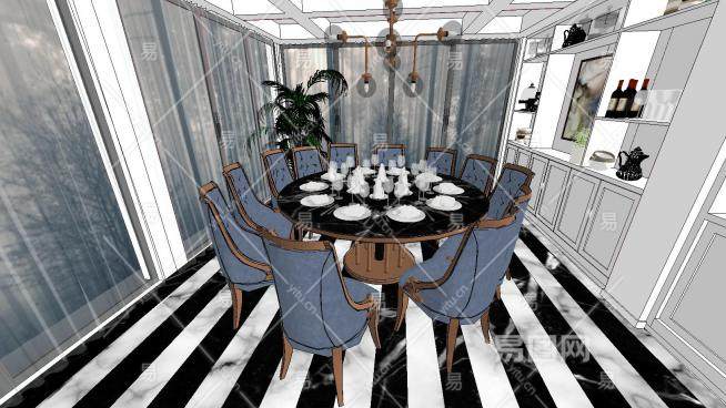 现代餐厅室内设计SU模型下载_sketchup草图大师SKP模型