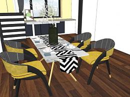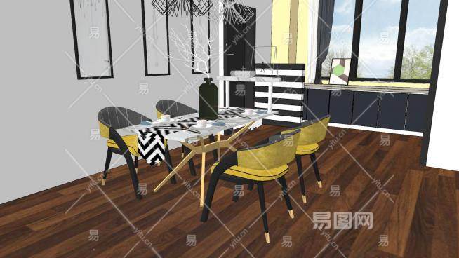 北欧简约餐厅家装设计SU模型下载_sketchup草图大师SKP模型