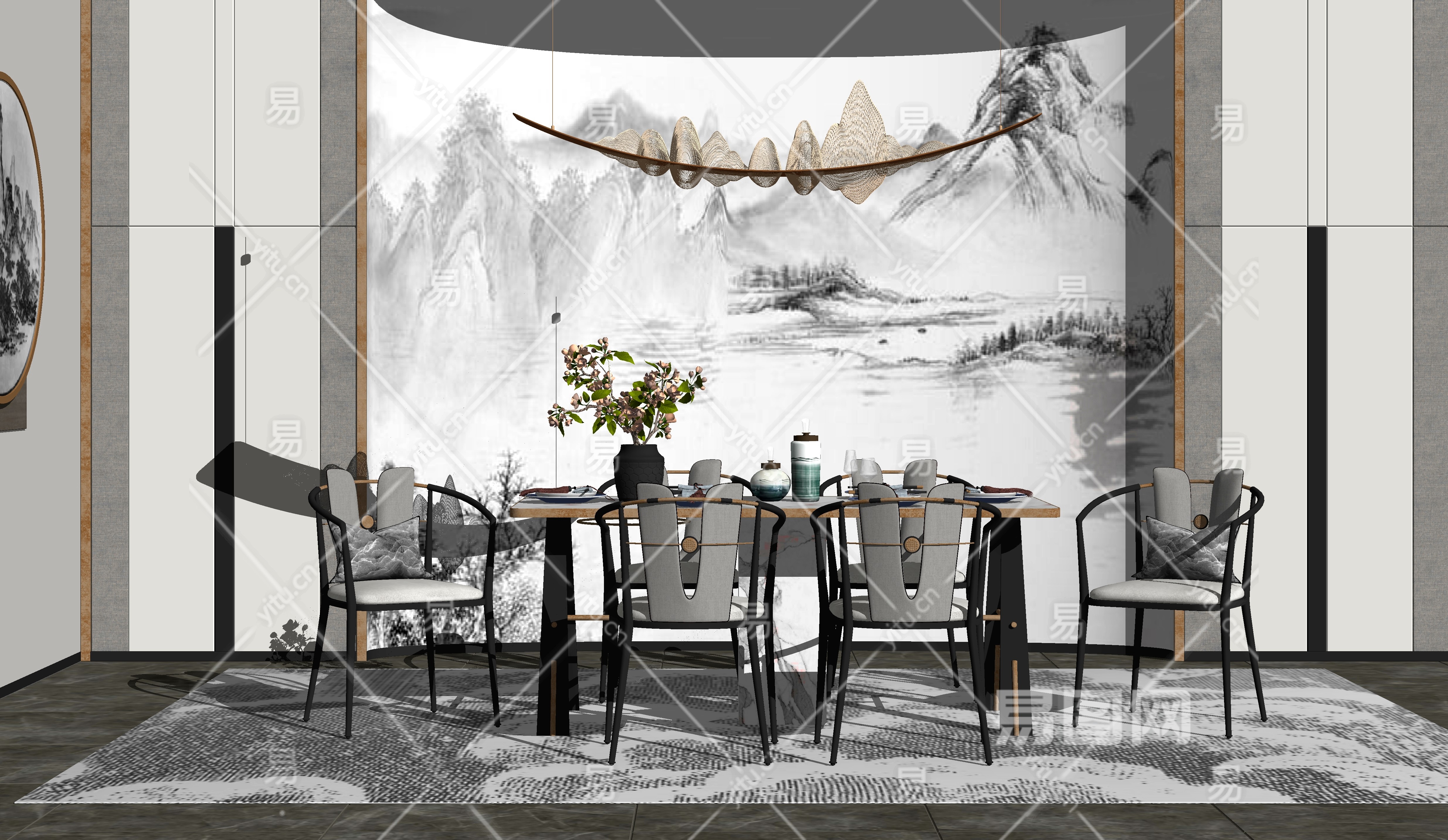 当前的位置:首页 > sketchup > sketchup模型 > 家装 > 餐厅 > 新中式餐厅 餐桌椅组合