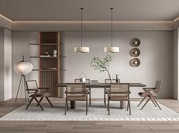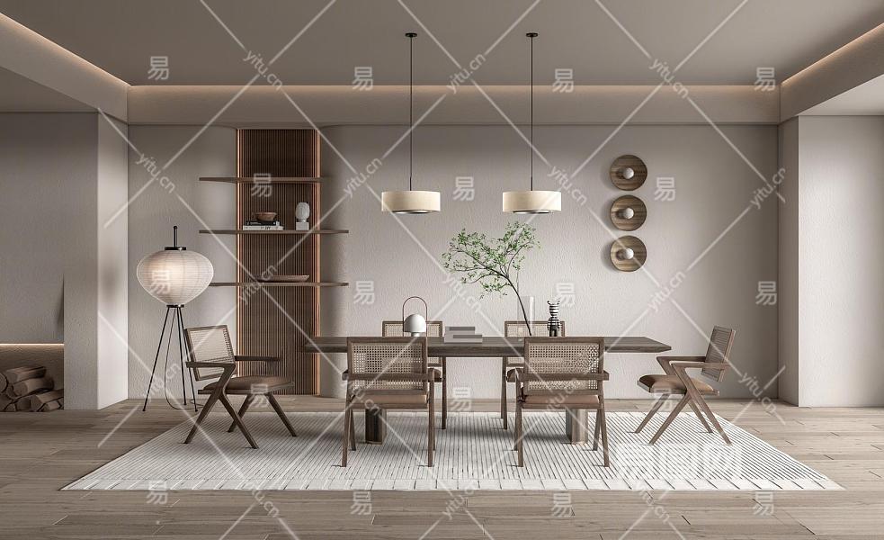 侘寂风餐厅 餐桌椅组合 吊灯 落地灯 摆件组合
