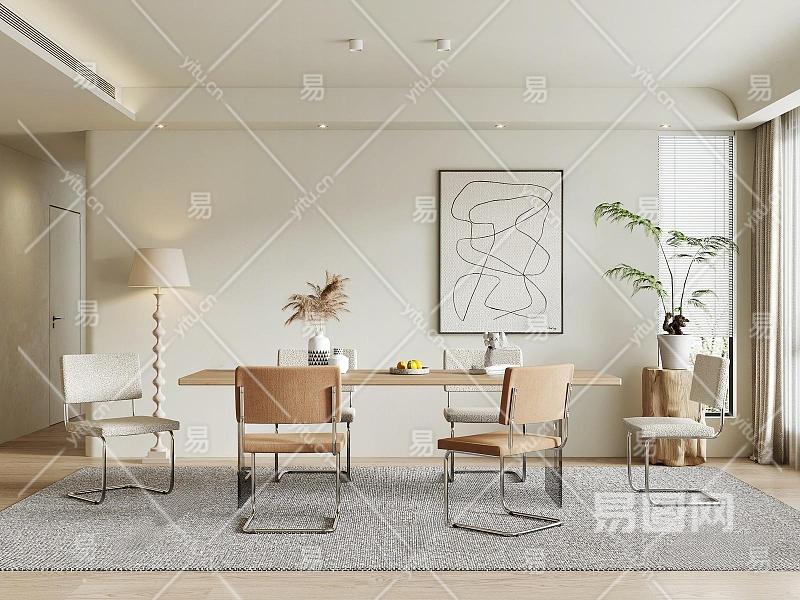 北欧家居餐厅 餐桌 餐椅 落地灯 绿植 装饰画
