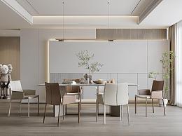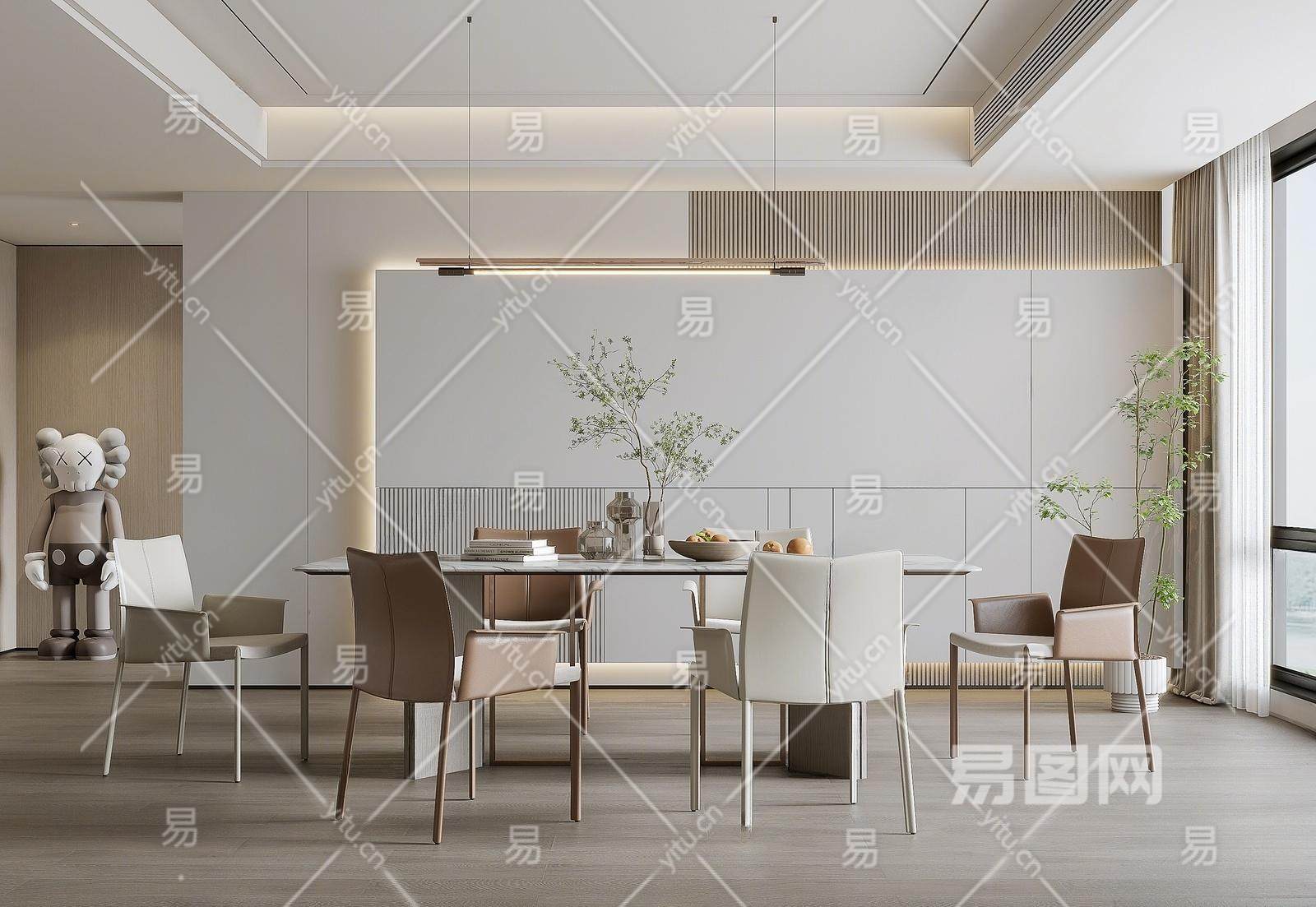 现代奶油风餐厅 桌椅组合 单椅 装饰品 吊灯 绿植