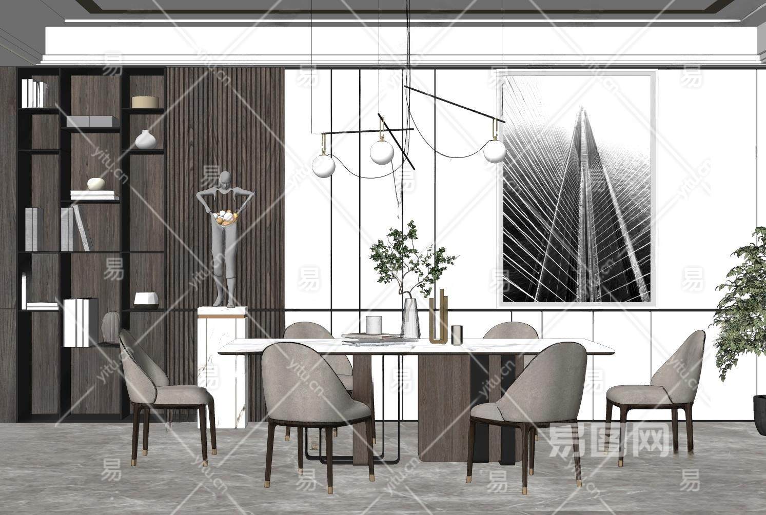 当前的位置:首页 > sketchup > sketchup模型 > 家装 > 餐厅 > 现代家居餐厅 餐桌椅组合