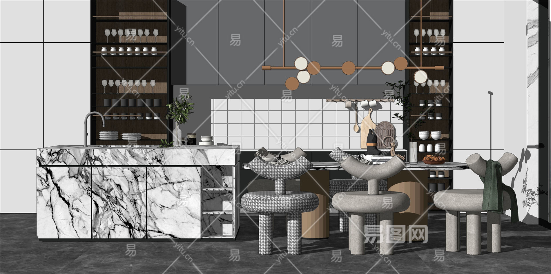 当前的位置:首页 > sketchup > sketchup模型 > 家装 > 餐厅 > 现代餐厅 餐桌椅 餐桌 餐椅 橱柜 餐柜 洗手台 摆件 餐具 吊灯