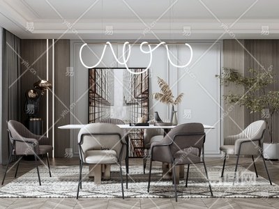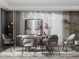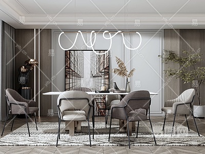 现代餐厅 餐桌椅组合 装饰画 雕塑 绿植 摆件 吊灯