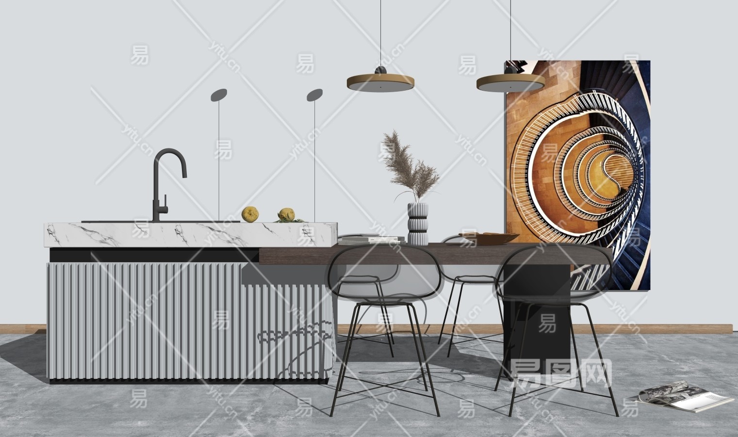 当前的位置:首页 > sketchup > sketchup模型 > 家装 > 餐厅 > 现代餐桌椅 餐桌 餐厅背景墙 装饰挂画 吊灯 圆形餐桌