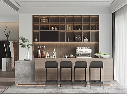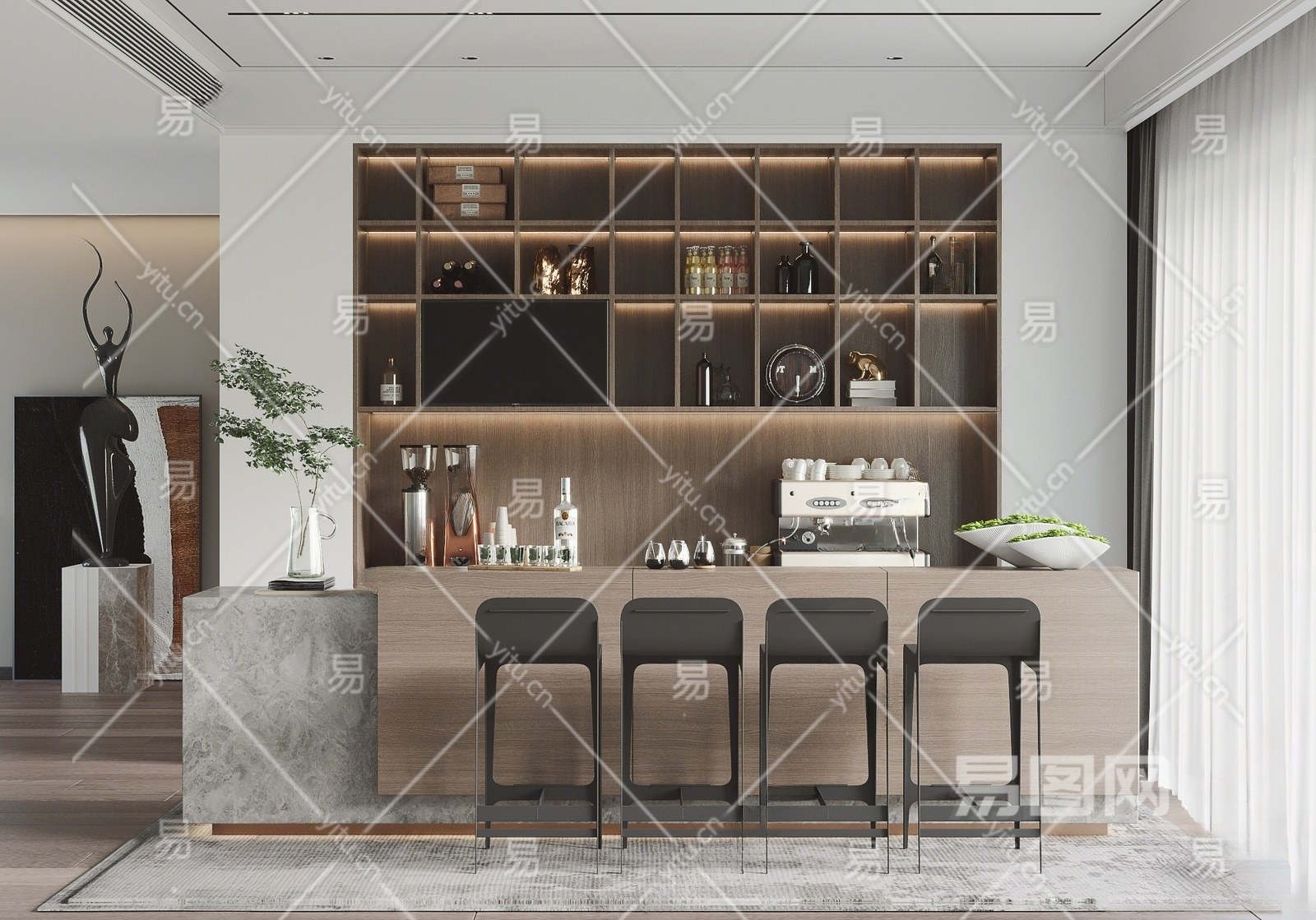 现代家居吧台 吧台椅 咖啡机 苔藓绿植盆栽 饰品组合 吧台柜 餐厅吧台区