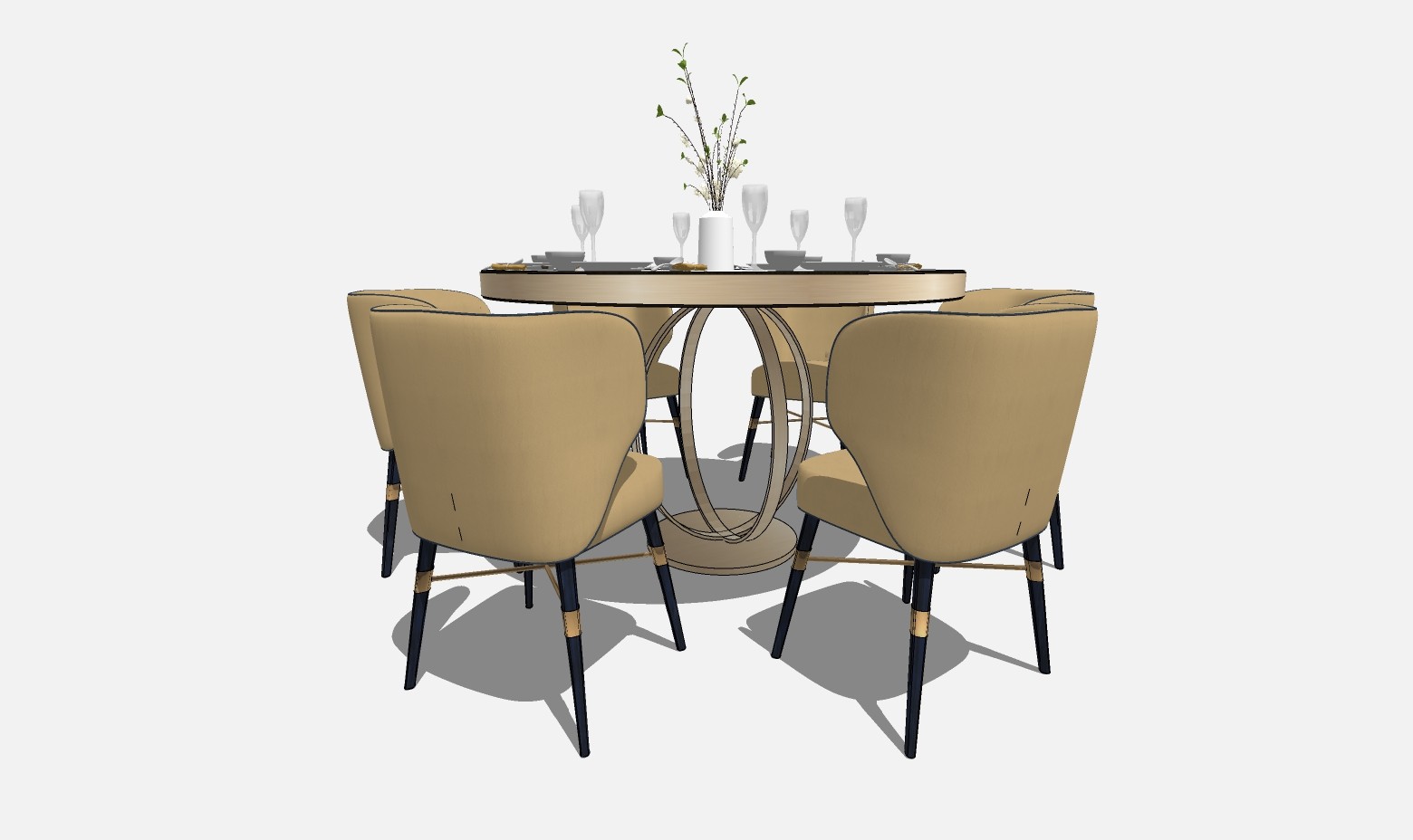 16现代圆形轻奢餐桌椅su模型,餐桌sketchup模型下载