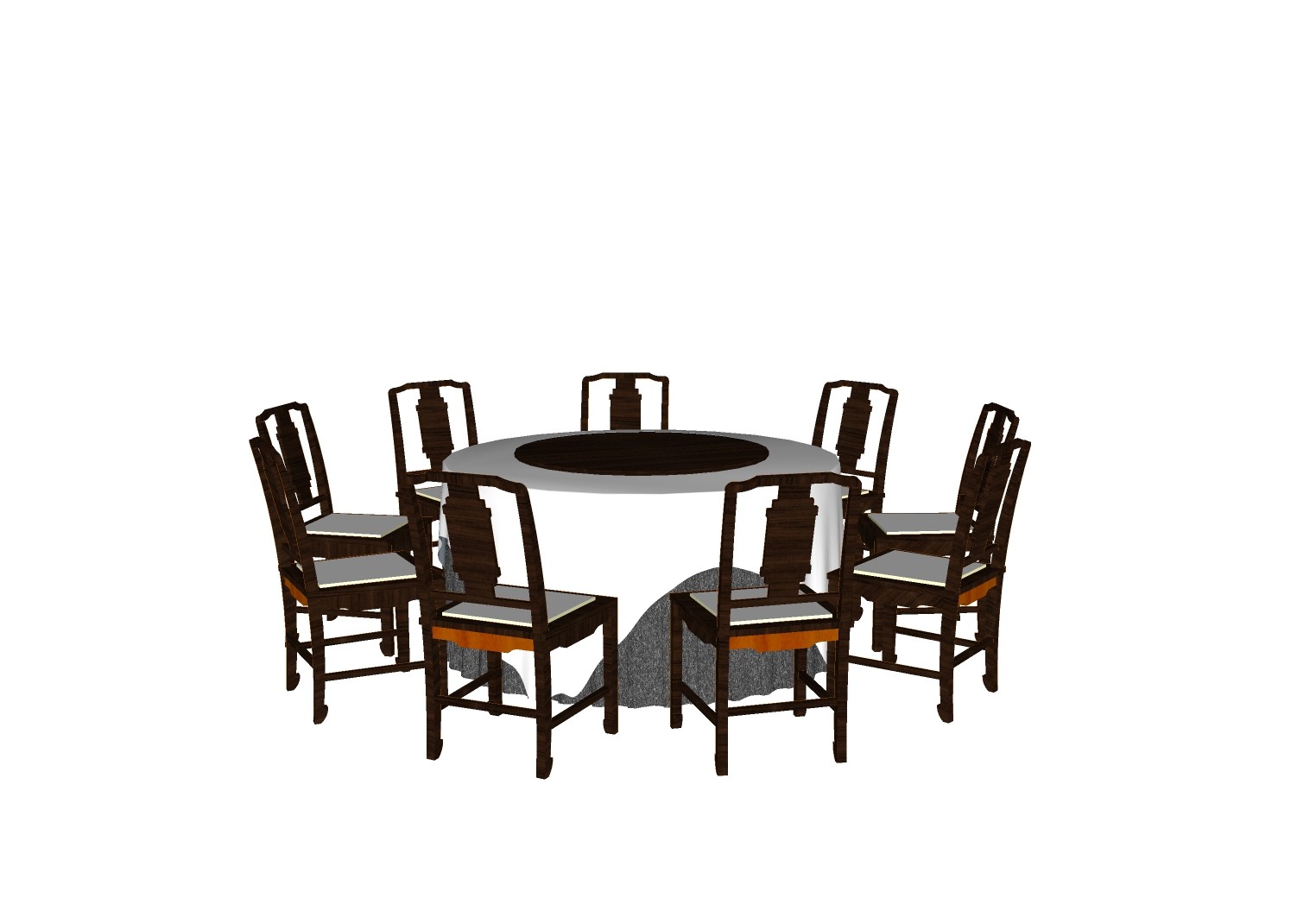新中式餐桌椅免费su模型,餐桌椅skp模型下载