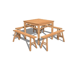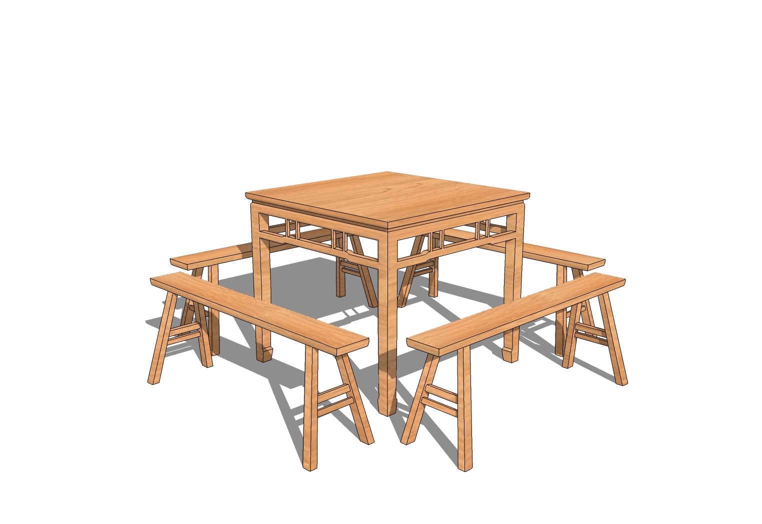 中式餐桌椅免费su模型,餐桌椅sketchup模型下载