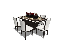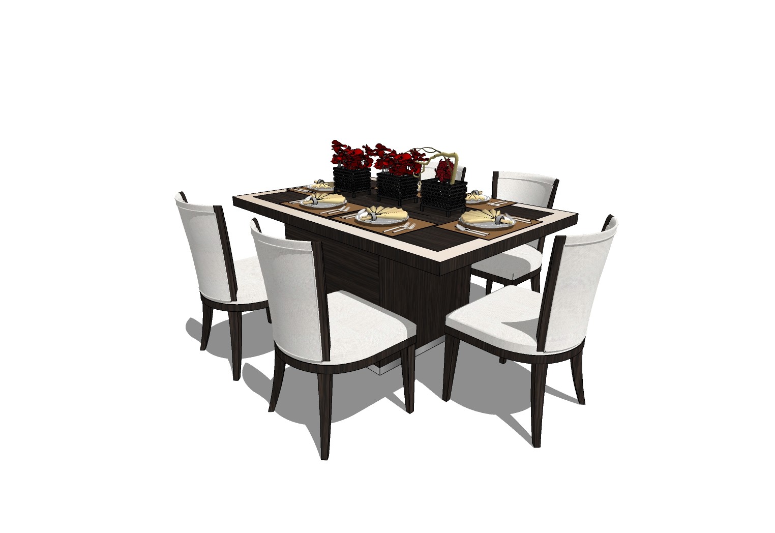 简欧餐桌椅su模型,餐桌椅草图大师模型下载