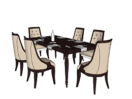 美式餐桌椅免费su模型,餐桌椅草图大师模型下载
