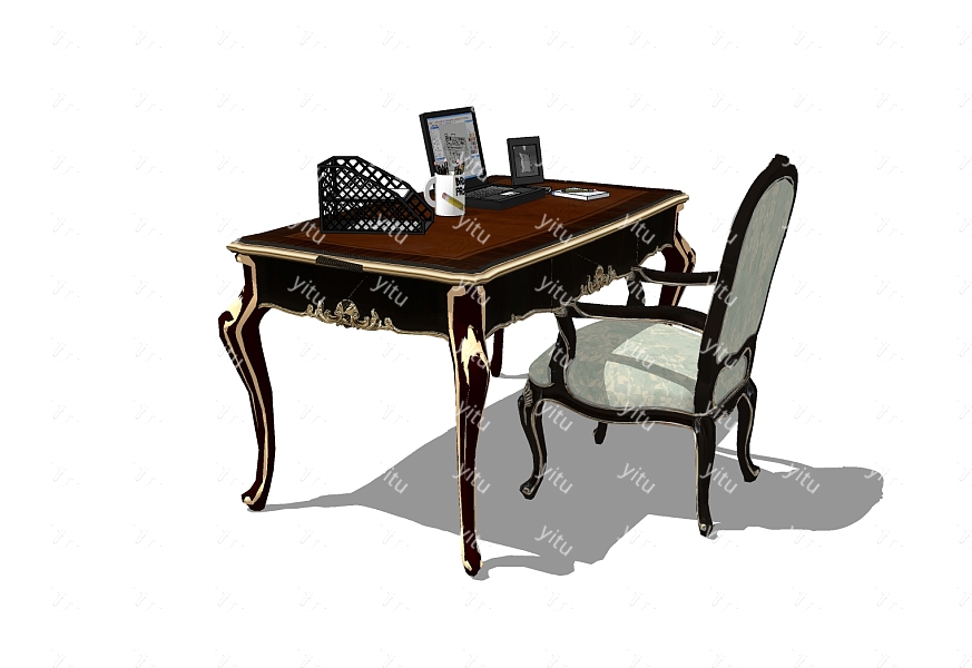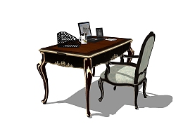 欧式书桌椅子组合su模型,书桌椅子sketchup模型下载