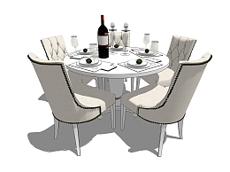 美式餐桌椅su模型,餐桌椅skp模型下载