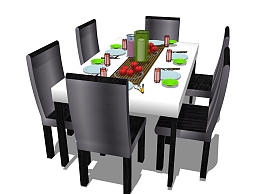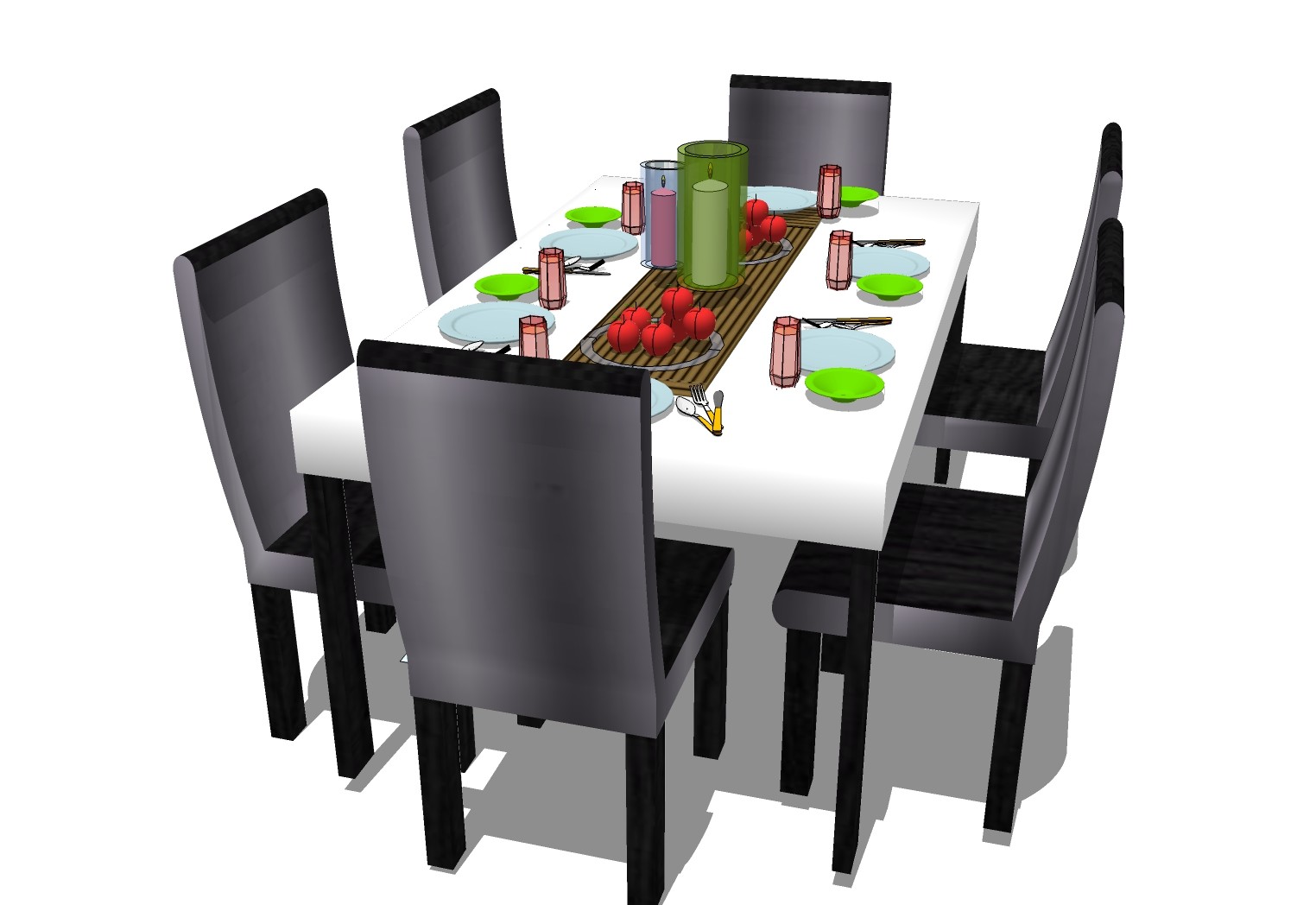 现代餐桌椅su模型,餐桌椅草图大师模型下载