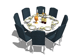 欧式圆形餐桌椅su模型,圆形餐桌椅sketchup模型下载