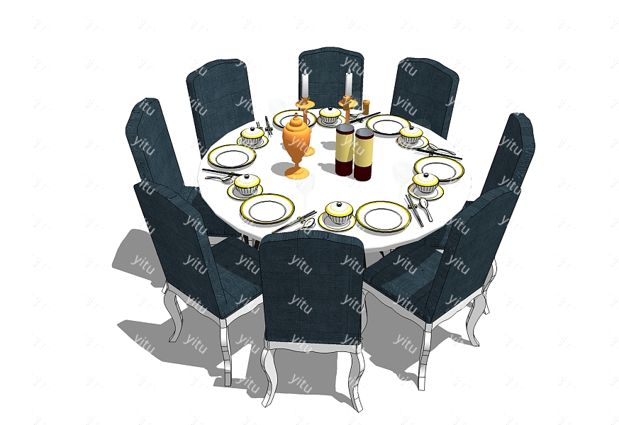 当前的位置:首页 > sketchup > sketchup模型 > 桌几 > 餐桌 > 欧式圆形餐桌椅su模型,圆形餐桌椅sketchup模型下载