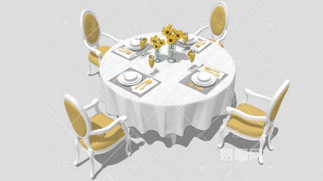 酒店餐厅桌椅su模型下载_sketchup草图大师SKP模型