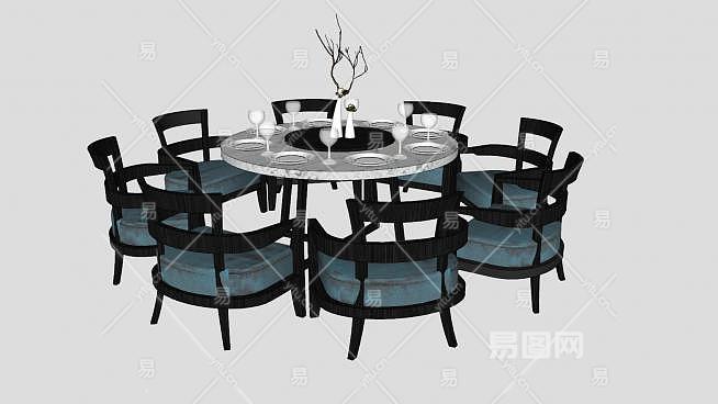 8人座圆形餐桌椅家具SU模型下载_sketchup草图大师SKP模型