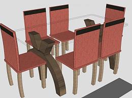 现代玻璃餐桌椅SU模型下载_sketchup草图大师SKP模型