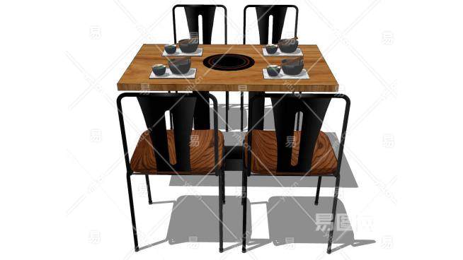 火锅店方形桌椅SU模型下载_sketchup草图大师SKP模型