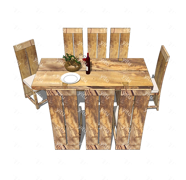 新中式餐桌椅草图大师模型,餐桌椅skb文件下载