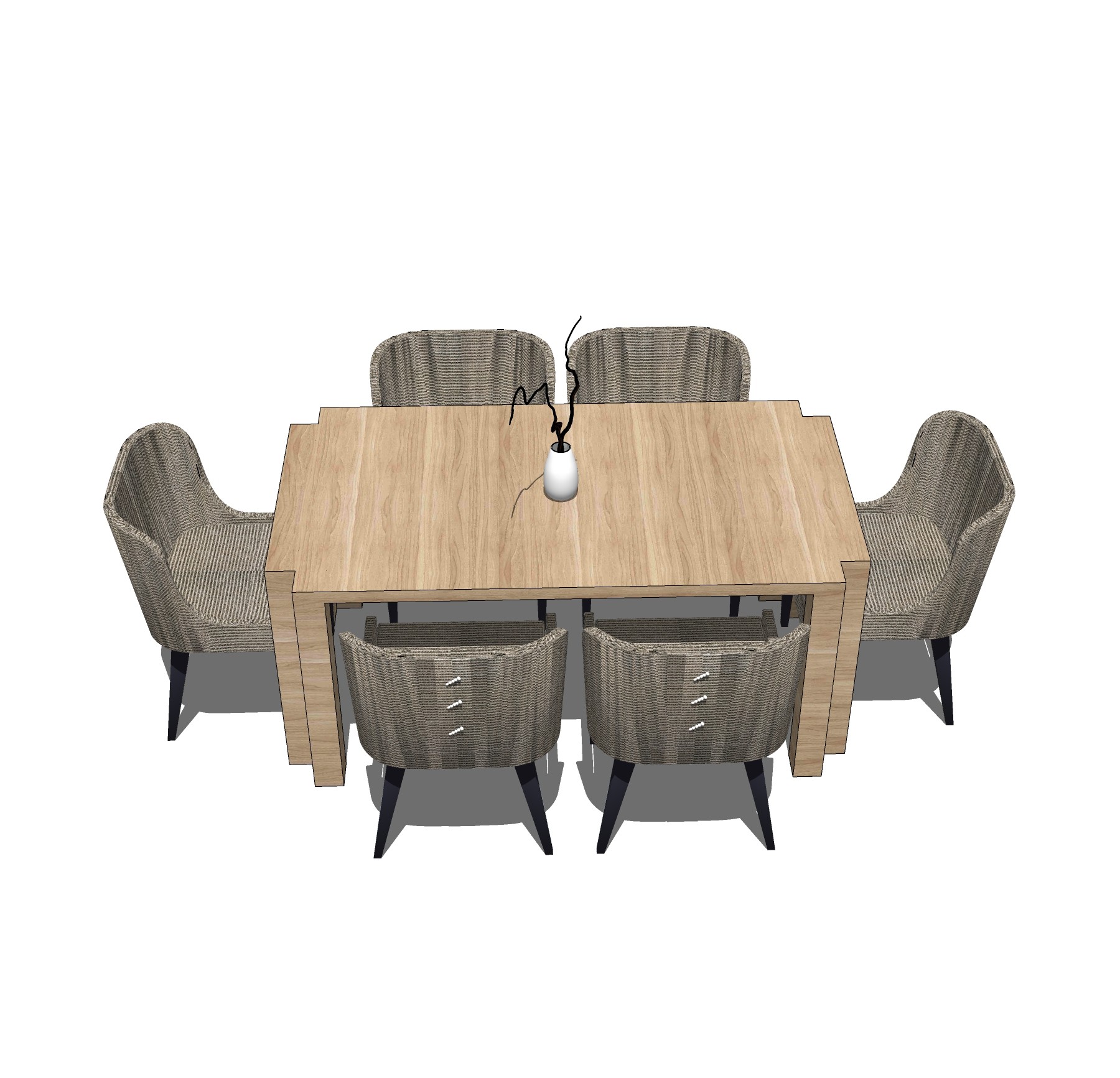 现代简约餐桌椅草图大师模型,餐桌椅skb文件