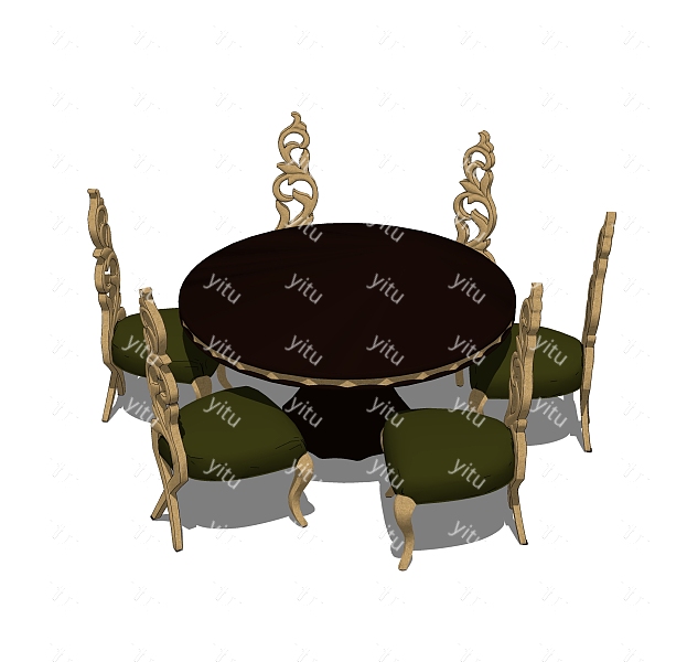 法式餐桌椅草图大师模型,餐桌椅skb文件下载