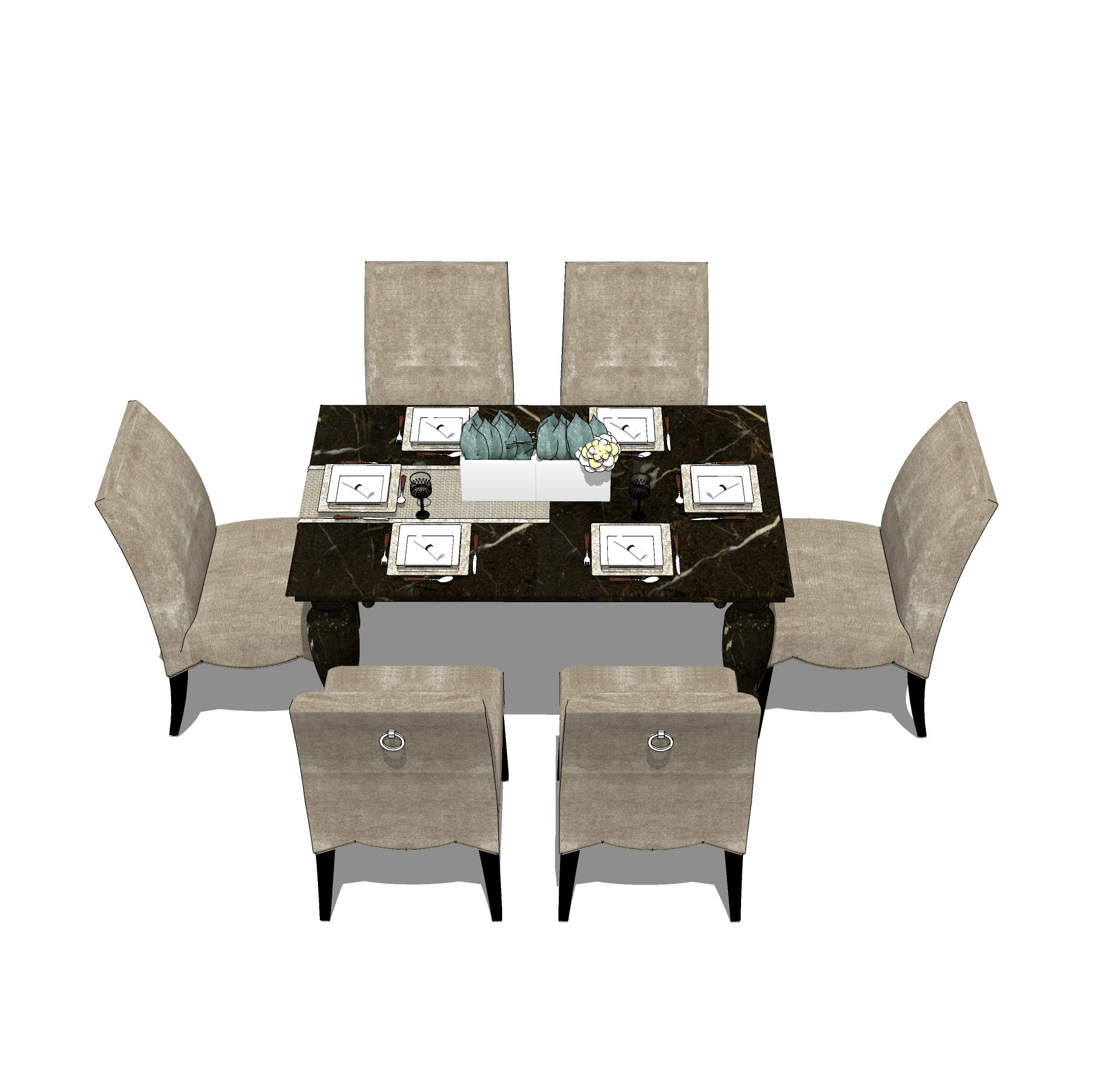 新中式餐桌椅草图大师模型,餐桌椅skb文件下载