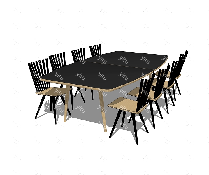 北欧实木餐桌椅su模型,八人餐桌草图大师模型下载