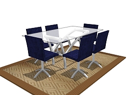 现代餐桌椅su模型,餐椅餐桌草图大师模型下载