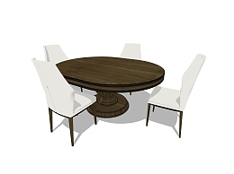 美式实木餐桌椅su模型,圆形桌子4人餐桌草图大师模型下载